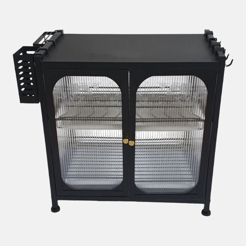 Elle dispose de deux portes pour protéger les objets rangés à l’intérieur, ces portes sont battantes (ouvrant vers l’extérieur). Elle est également équipée de deux étagères pour placer vos ustensiles préférés.