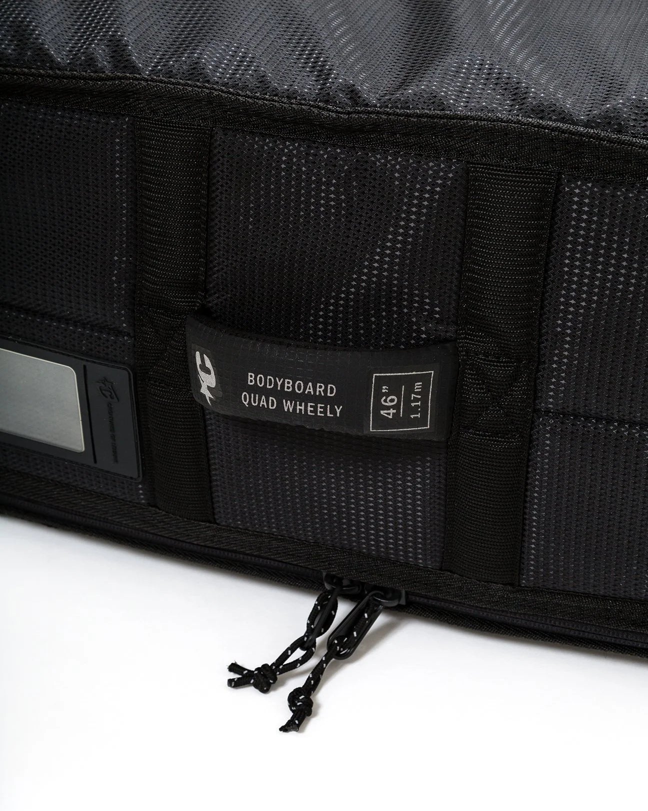 The Bodyboard Quad Wheely Boardcover is designed for long term heavy duty travel. The four-board capacity cover allows you to travel with the ease of a wheeled bag. Our covers are now lighter, stronger and more durable with the exclusive DIAMOND-TECH fabric.
