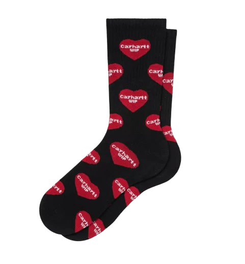 CHAUSSETTE CARHARTT Les chaussettes ‘Heart Logo’ sont tricotées à partir d’un fil de coton stretch et affichent un motif en jacquard allover. Elles présentent des coutures côtelées aux chevilles.