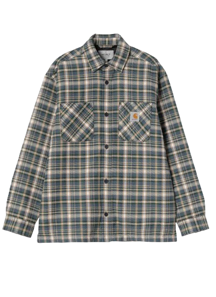 CHEMISE HOMME CARHARTT X LIFESTYLE La surchemise ‘Cronyn’ est confectionnée en polyester-coton sergé semi-épais. Matelassée, elle est boutonnée et dispose de deux poches poitrine, de deux poches latérales et de poignets ajustables. Le Square Label complète le design.