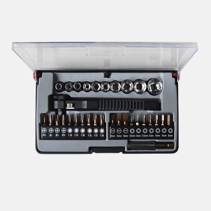 Un coffret compact, pratique et prêt pour tous vos travaux. Marque : Sellery Matériaux : acier carbone Forme : Boite de 32 pièces