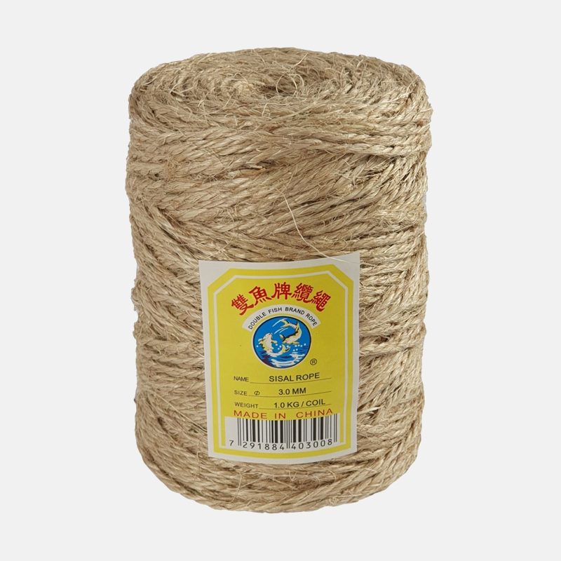 Cordes solides et durables. Marque : Double Fish Brand Rope Matériau : Fibre de sisal, plante d’origine mexicaine. Forme : Bobinage Dimension : 3 mm de diamètre Capacité : 1 kg de corde sisal Poids de l’article : 1 Kg