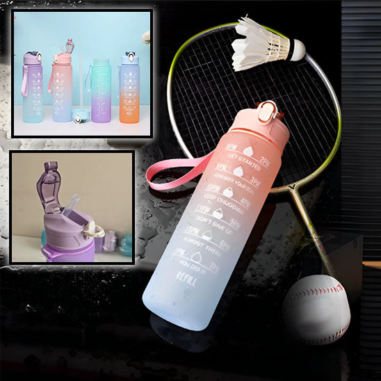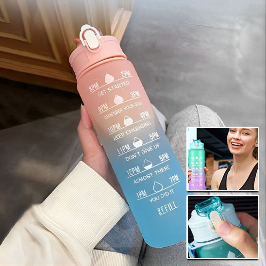 Gourde Horodatée Anti-Fuites 900ml avec Paille Intégrée – Solution Hydratation Quotidienne
