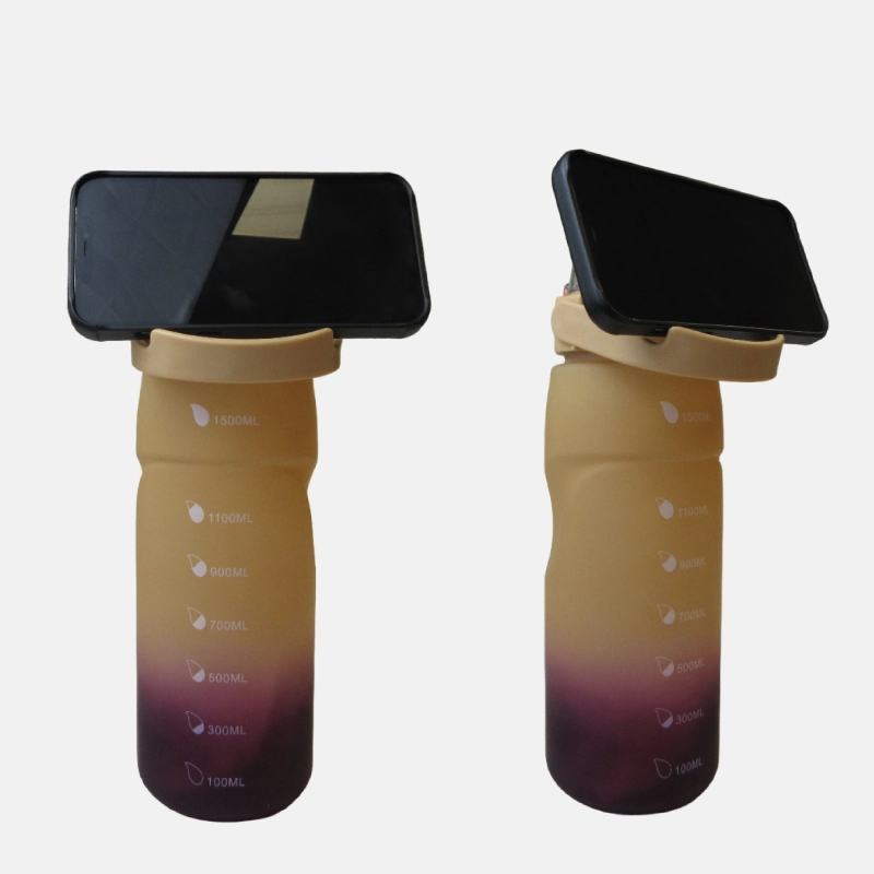 GOURDE PLASTIQUE 1.5L + porte téléphone – couleurs