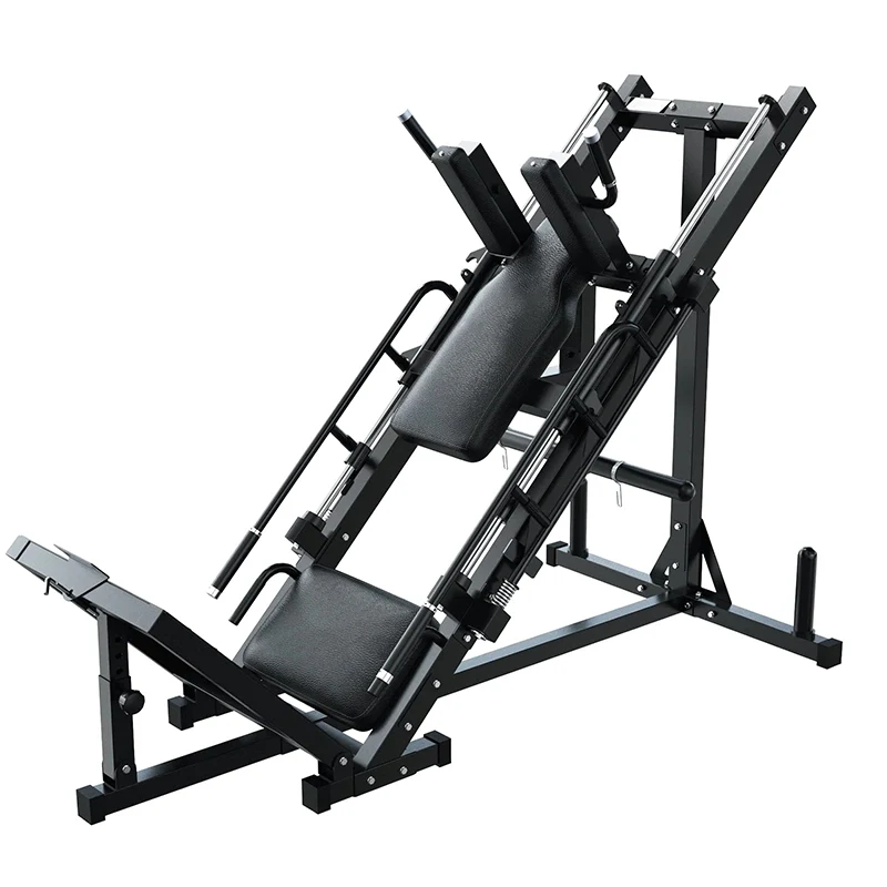 Passez rapidement du leg press au hack squat en quelques ajustements simples.