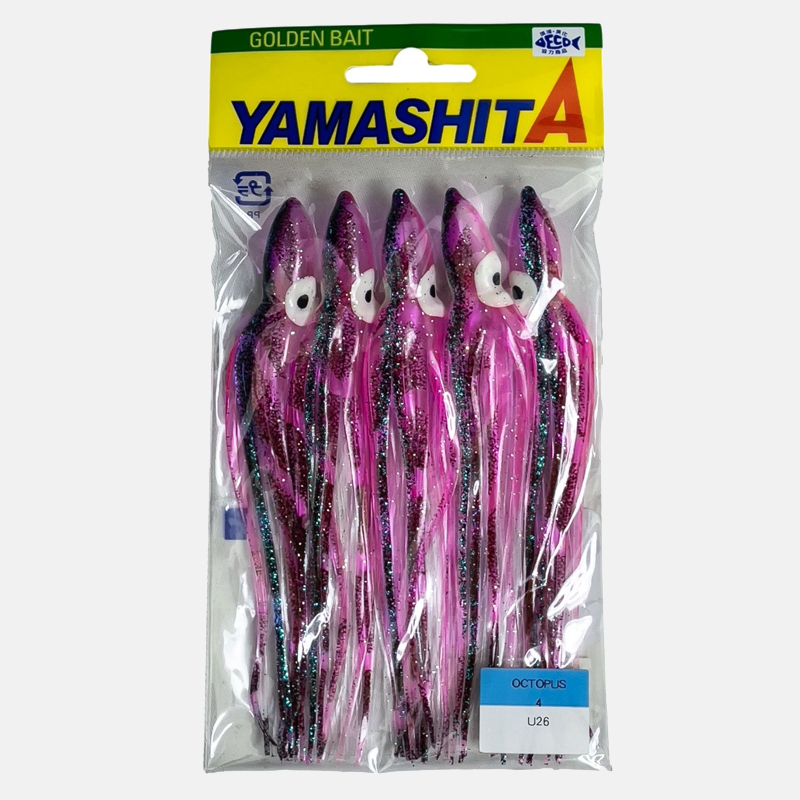 Un appât pour la pêche ayant la forme d’une pieuvre de 12 cm de long est un petit leurre spécialement fait pour attirer les poissons. Il est de couleur noir, rose paillettes. Cet appât est fait en caoutchouc souple pour bouger naturellement dans l’eau et il imite une petite pieuvre avec des tentacules qui bougent.