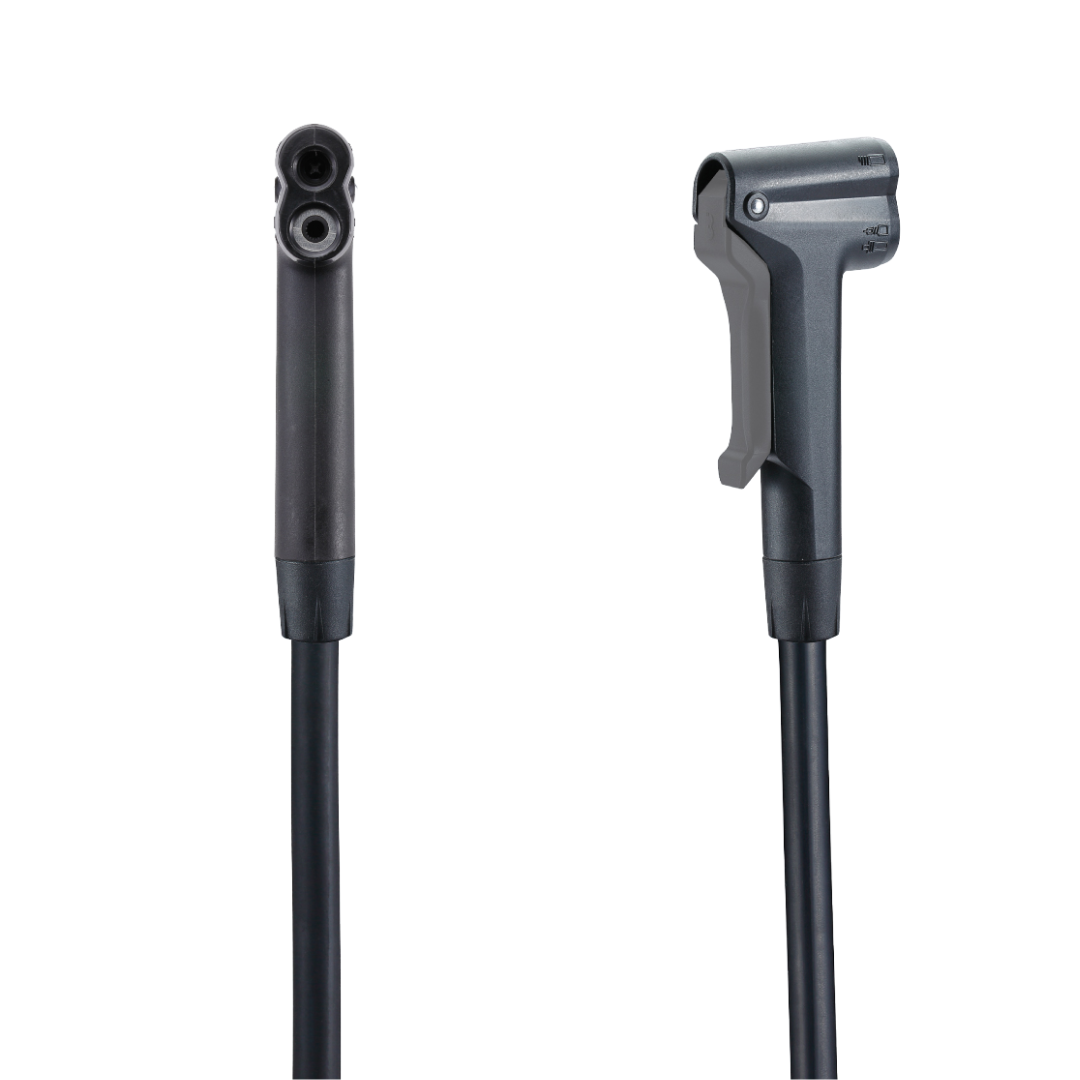 La poignée ergonomique en forme de boomerang assure une prise en main naturelle et confortable, permettant un pompage efficace sans effort superflu. Son corps et sa base en composite garantissent à la fois légèreté et solidité, pour une utilisation durable. Avec une hauteur standard de 62 cm et une longueur flexible de 90 cm, elle s’adapte à toutes les situations, que ce soit à la maison ou en atelier.