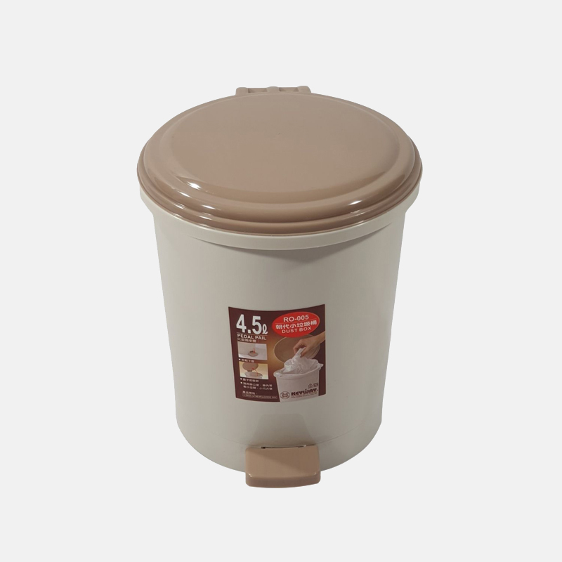 Choix pratique pour la gestion des petits déchets dans des espaces compacts. Marque : Keyway, The modern art of plastics Matériaux : Polymère Forme : Rond Dimensions : 24 cm de hauteur x 19.6 cm de diamètre x 24 mm de pédale Capacité : 4.5 litres Poids de l’article : 200 g