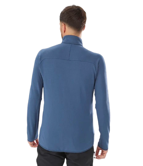 Cette polaire montagne pour homme offre un rapport volume/chaleur optimal grâce à sa matière Polartec® Power Grid™. Celle-ci présente une structure quadrillée en relief sur l’intérieur qui maximise l’apport de chaleur sans augmenter le poids et accélère l’évacuation de l’humidité. En pratique, cela donne une polaire technique légère, chaude et compacte une fois pliée. La liberté de mouvement est favorisée par la matière élastique et la construction à manches raglan, tandis que les bandes sans coutures sous les bras évitent les irritations. Enfin, cette polaire homme à zip intégral présente deux poches accessibles malgré le baudrier.