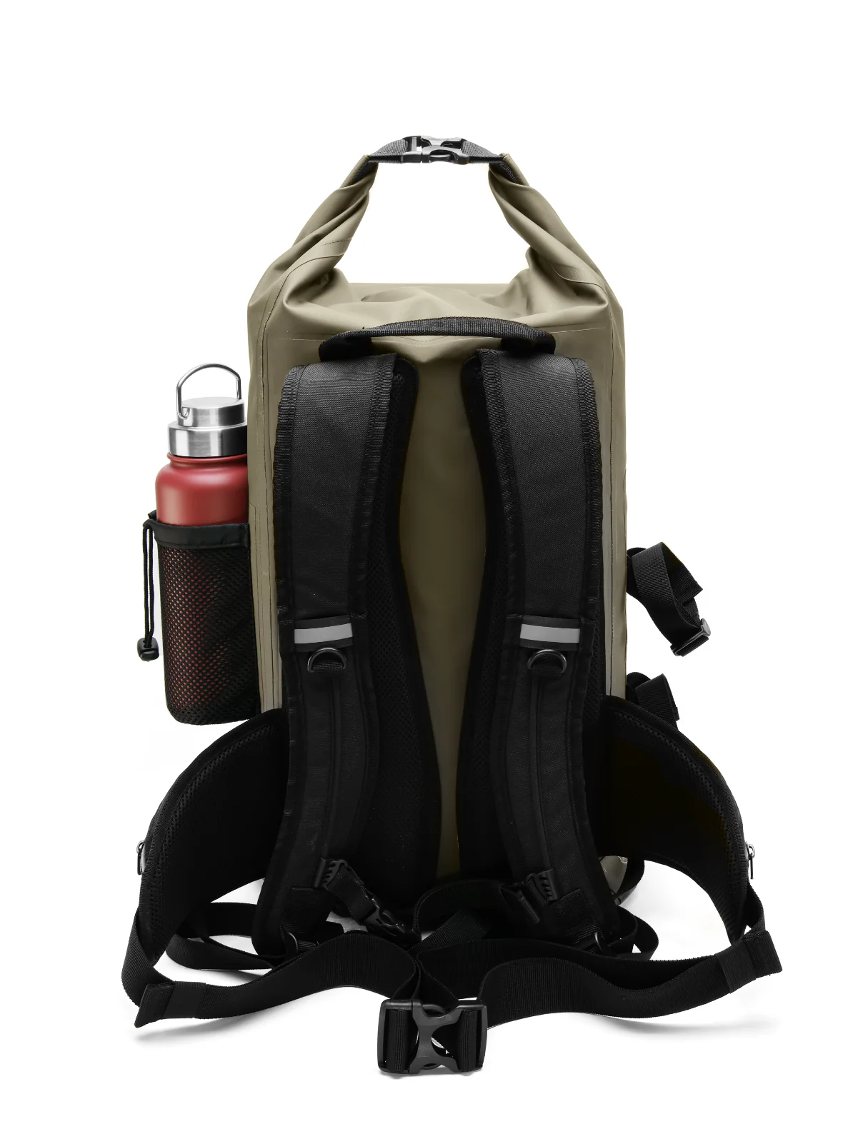 • Compartiments pratiques : La petite poche à fermeture éclair sur le devant permet de ranger facilement les articles plus petits et accessibles. Sur le côté droit, le filet offre un espace supplémentaire pour les articles à sécher ou à aérer. Sur le côté gauche, les lanières réglables offrent un ajustement personnalisé.