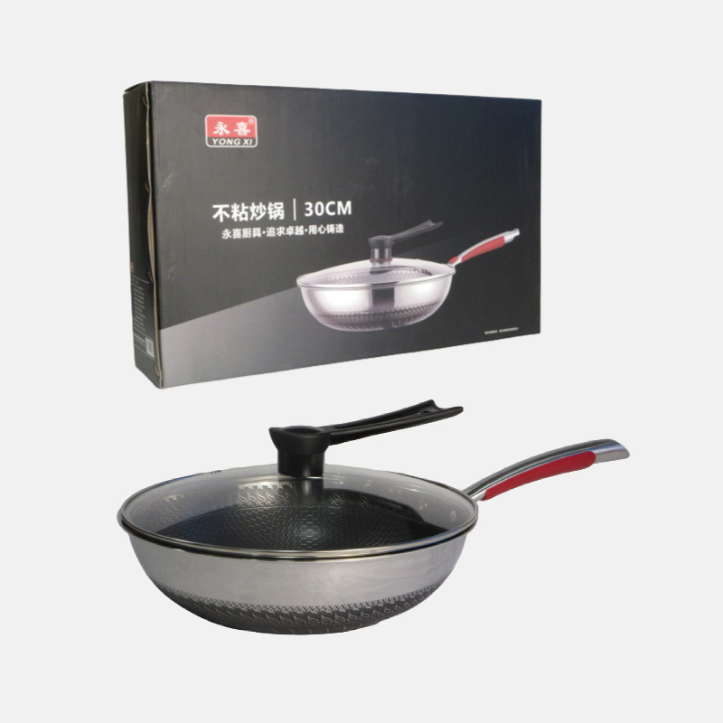 Le wok est doté d’un manche solide et ergonomique en acier inoxydable, qui reste frais au toucher pendant la cuisson, assurant ainsi une manipulation sûre et confortable.