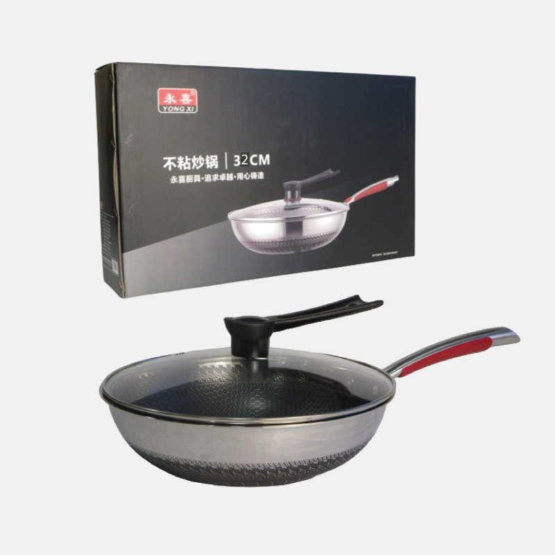 Le wok est doté d’un manche solide et ergonomique en acier inoxydable, qui reste frais au toucher pendant la cuisson, assurant ainsi une manipulation sûre et confortable.