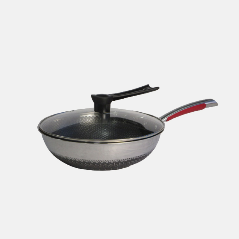 Le wok est doté d’un manche solide et ergonomique en acier inoxydable, qui reste frais au toucher pendant la cuisson, assurant ainsi une manipulation sûre et confortable.
