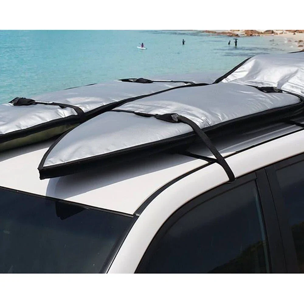 Through the door style temporary roof racks, offered in two sizes. Durable cushioned pads that sit between the boards and the roof for added protection with connected Tie Downs. Industrial strength 30mm metal buckle with a moulded silicon cover for car protection. Heavy-duty 30mm military grade webbing.
